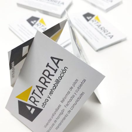 Una de las cosas más importantes a tener en cuenta en el diseño del logotipo es tener en mente cómo vamos a ver luego dicho logotipo en cada uno de los materiales gráficos en el que lo vayamos a plasmar. En este caso, además de las tarjetas de visita, las pancartas de obra son unos elementos muy visibles. Os dejamos algunos ejemplos para que veáis cómo las hemos desarrollado.
